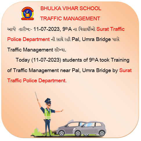 Students of 9th-A took Training of Traffic Management near Pal, Umra Bridge by Surat Traffic Police Department
