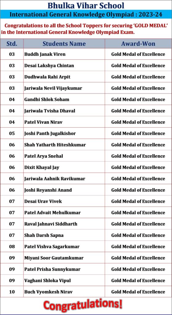 INTERNATIONAL GENERAL KNOWLEDGE OLYMPIAD EXAM SCHOOL TOPPERS