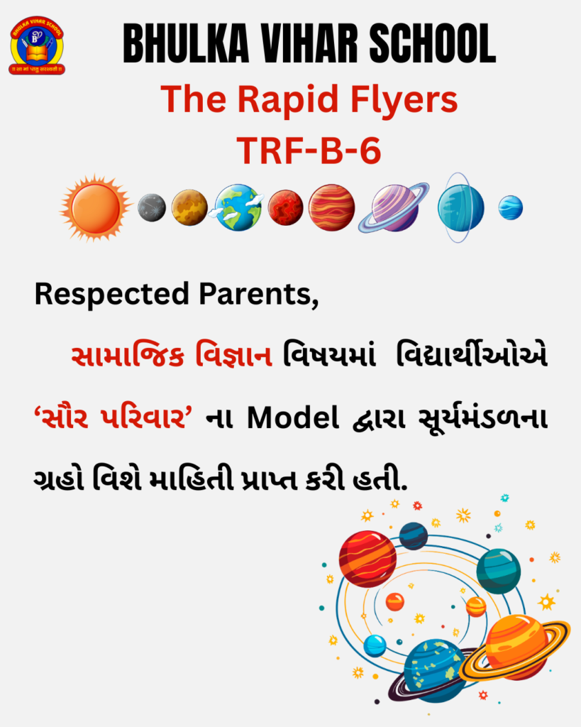 વિદ્યાર્થીઓએ ‘સૌર પરિવાર’ ના Model દ્વારા સૂર્યમંડળના ગ્રહો વિશે માહિતી પ્રાપ્ત કરી હતી….