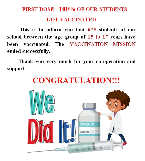 FIRST DOSE – 100% OF OUR STUDENTS GOT VACCINATED