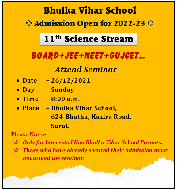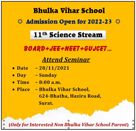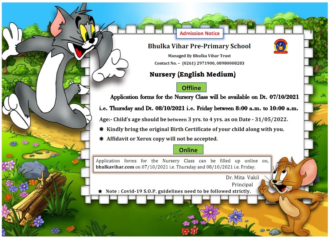 Admission Notice for the Nursery (English Medium & Gujarati Medium)