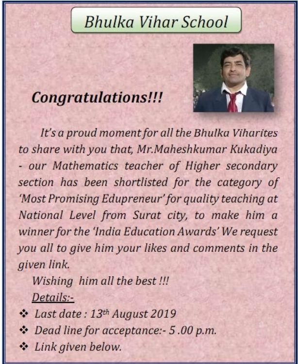 Proud Moment For Bhulka Vihar School
