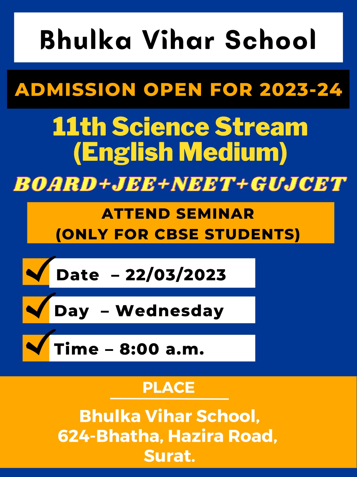 Admission open in 11th Science. (Batch 2023-24)