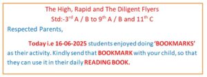 Students enjoyed doing ‘BOOKMARKS’ as their activity…