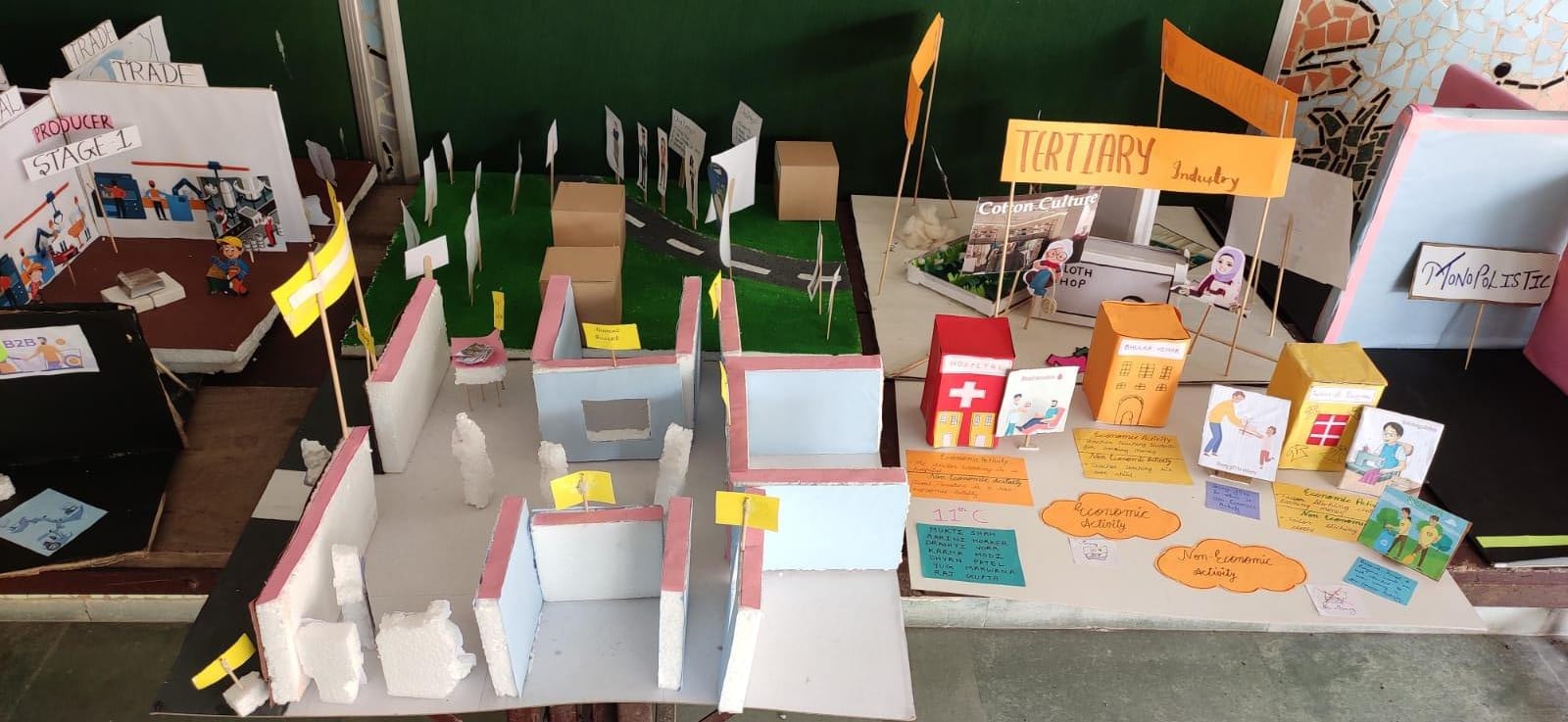 TDF-11-C students have prepared different models in the school.